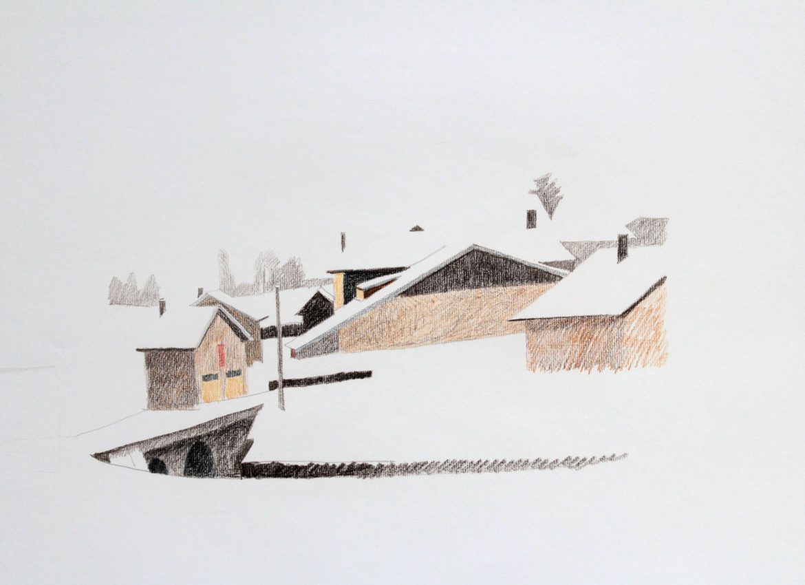 Les maisons 18 février 1991 graphite 36 x 53 cm