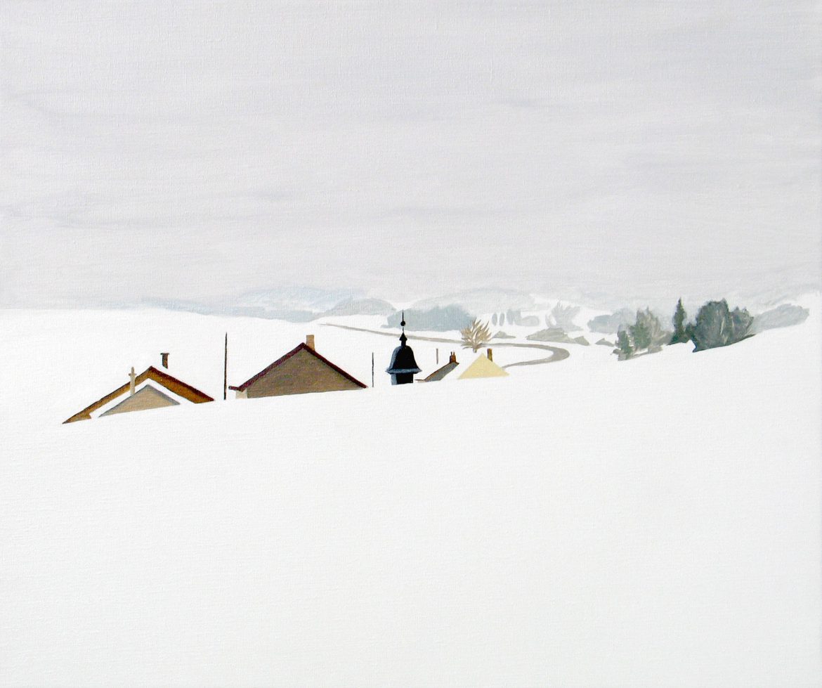 La ferme à l’horizon, neige 1998 huile 130 x 162 cm